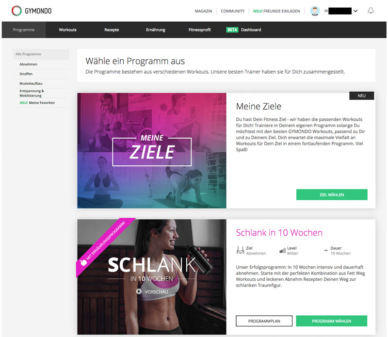 Quelle der verwendeten Screenshots: www.gymondo.de*